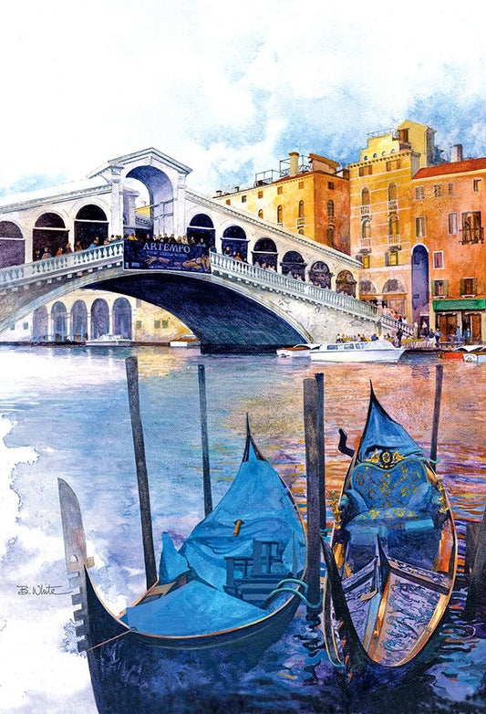 Rialto Bridge - Venice Italy White Modern Wood Framed Art Print with Double Matting by White, Bruce