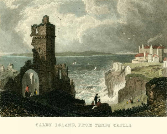 Caldy Island, from Tenby Castle White Modern Wood Framed Art Print with Double Matting by Allom, T.