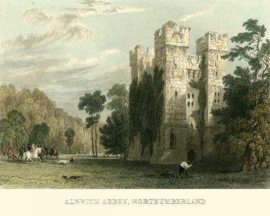 Ainwick Abbey, Northumberland White Modern Wood Framed Art Print with Double Matting by Allom, T.