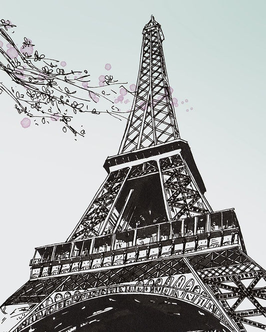Spring in Paris I White Modern Wood Framed Art Print with Double Matting by Wang, Melissa