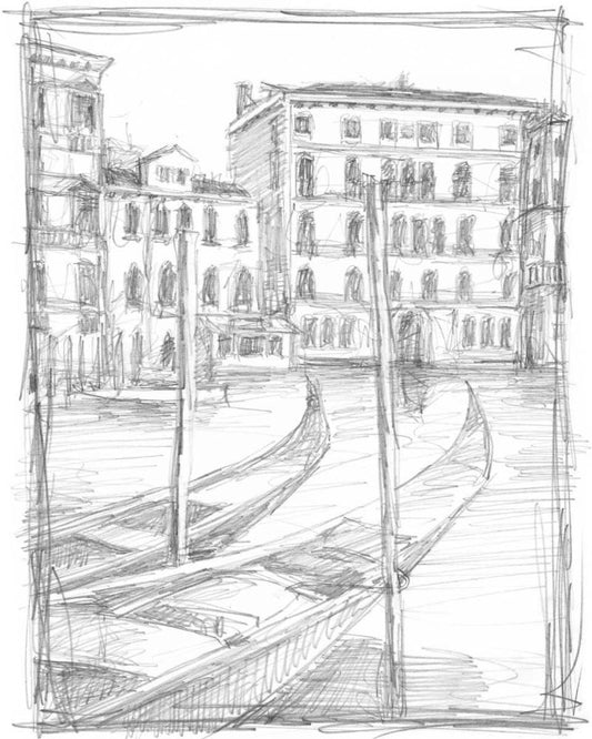Sketches of Venice I White Modern Wood Framed Art Print with Double Matting by Harper, Ethan