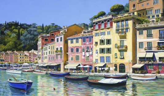 Sunny Street in Portofino White Modern Wood Framed Art Print with Double Matting by Swanson, Michael