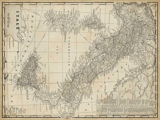 Antique Map of Italy White Modern Wood Framed Art Print with Double Matting by Vision Studio