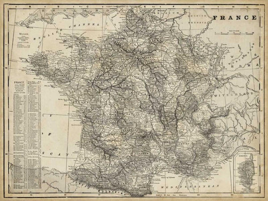Antique Map of France White Modern Wood Framed Art Print with Double Matting by Vision Studio