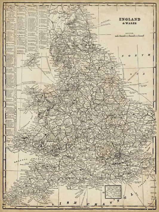Antique Map of England White Modern Wood Framed Art Print with Double Matting by Vision Studio