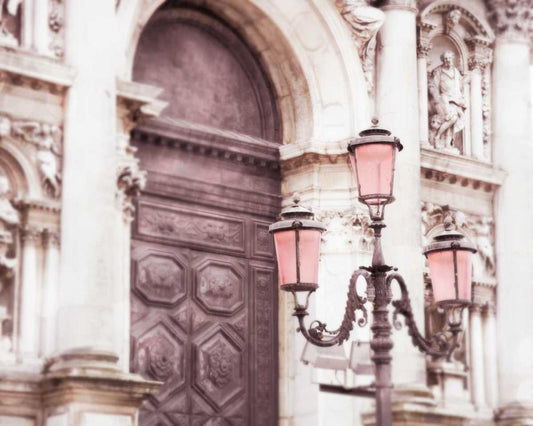 Venice Pink Lanterns I White Modern Wood Framed Art Print with Double Matting by Quintero, Sonja