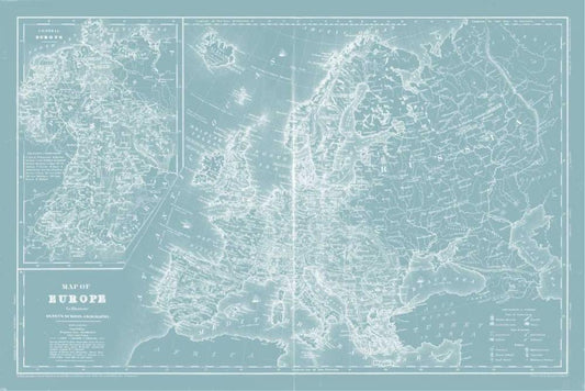 Map of Europe on Aqua White Modern Wood Framed Art Print with Double Matting by Mitchell