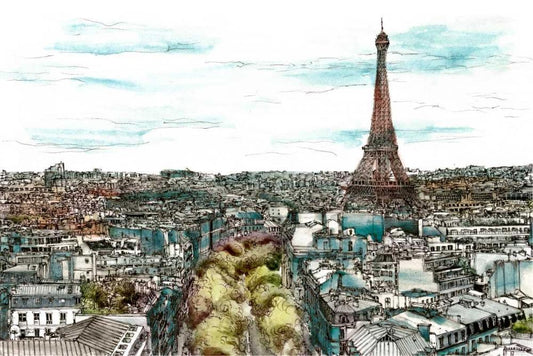 Paris Sketchbook I White Modern Wood Framed Art Print with Double Matting by Parker, Jennifer Paxton