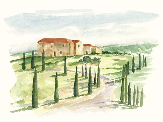 Watercolor Tuscan Villa I White Modern Wood Framed Art Print with Double Matting by Harper, Ethan