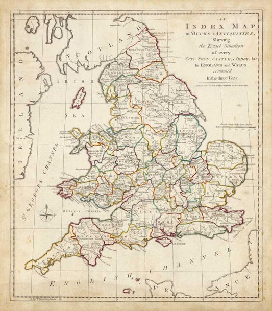 Towns, Castles and Abbeys in England and Wales White Modern Wood Framed Art Print with Double Matting by Unknown