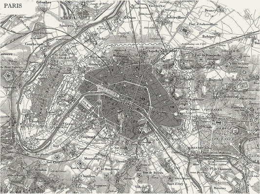 Custom B and W Map of Paris White Modern Wood Framed Art Print with Double Matting by Vision Studio