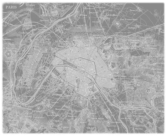 Custom Grey Map of Paris White Modern Wood Framed Art Print with Double Matting by Vision Studio