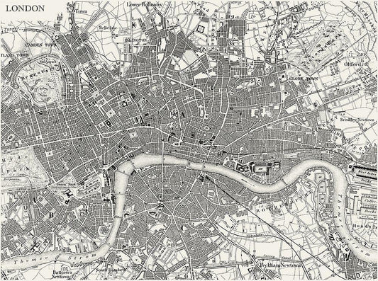 Custom B and W Map of London White Modern Wood Framed Art Print with Double Matting by Vision Studio