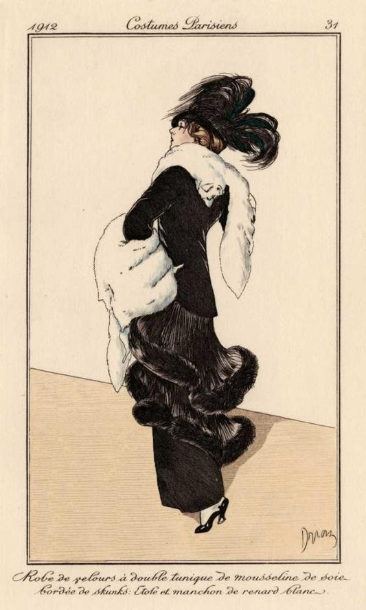 Vintage French Fashion I White Modern Wood Framed Art Print with Double Matting by Unknown