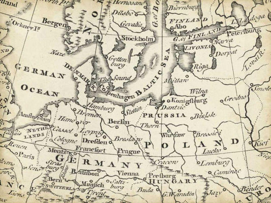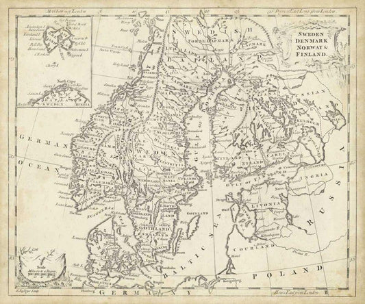 Map of Sweden and Denmark White Modern Wood Framed Art Print with Double Matting by Jeffreys, T.