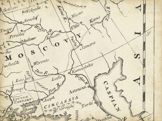 Map of Europe Grid VI White Modern Wood Framed Art Print with Double Matting by Jeffreys, T.