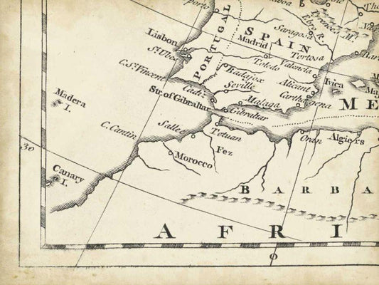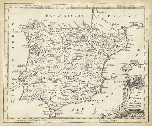 Map of Spain White Modern Wood Framed Art Print with Double Matting by Jeffreys, T.