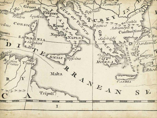 Map of Europe Grid I White Modern Wood Framed Art Print with Double Matting by Jeffreys, T.