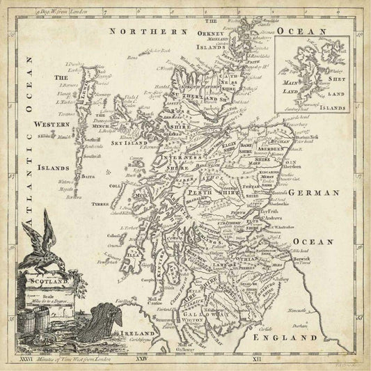Map of Scotland White Modern Wood Framed Art Print with Double Matting by Jeffreys, T.