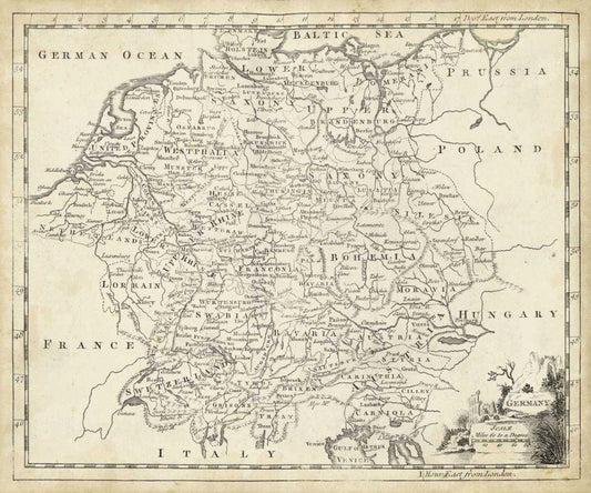 Map of Germany White Modern Wood Framed Art Print with Double Matting by Jeffreys, T.