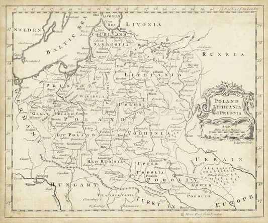 Map of Poland White Modern Wood Framed Art Print with Double Matting by Jeffreys, T.