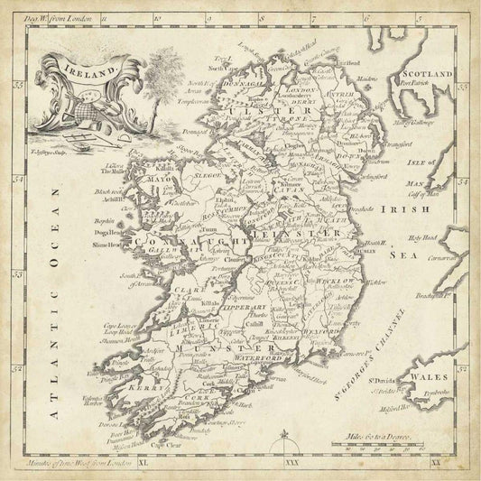 Map of Ireland White Modern Wood Framed Art Print with Double Matting by Jeffreys, T.