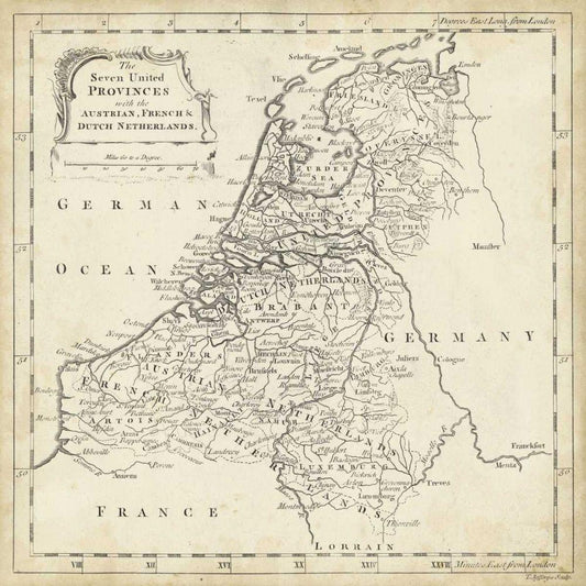 Map of Netherlands White Modern Wood Framed Art Print with Double Matting by Jeffreys, T.