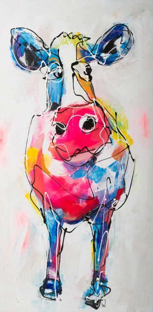 Colourful art cows White Modern Wood Framed Art Print with Double Matting by Fiore, Art