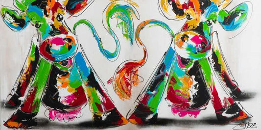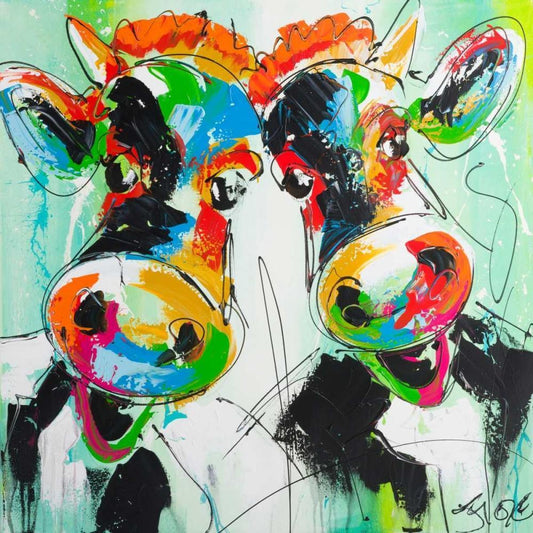 Happy cows I White Modern Wood Framed Art Print with Double Matting by Fiore, Art