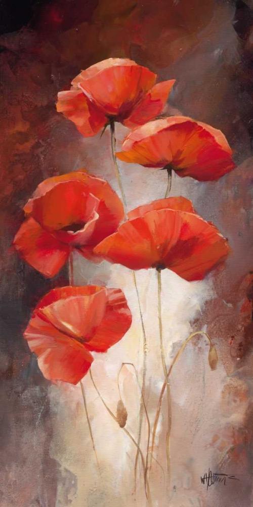 Poppy Bouquet I White Modern Wood Framed Art Print with Double Matting by Haenraets, Willem
