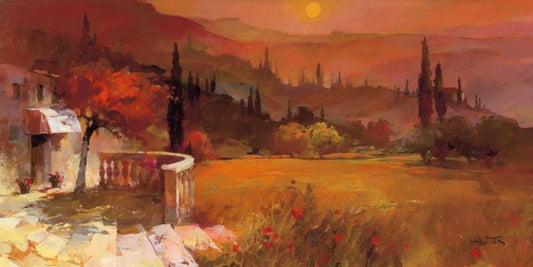 Romantic Tuscany I White Modern Wood Framed Art Print with Double Matting by Haenraets, Willem