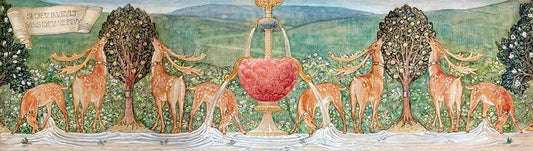 Deer by a Fountain White Modern Wood Framed Art Print with Double Matting by Burne–Jones, Edward