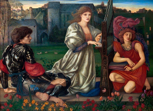 The Briar Rose Series-Study for The Garden Court White Modern Wood Framed Art Print with Double Matting by Burne–Jones, Edward