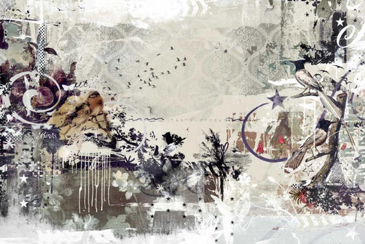 Tweeting birds White Modern Wood Framed Art Print with Double Matting by Albers, Teis