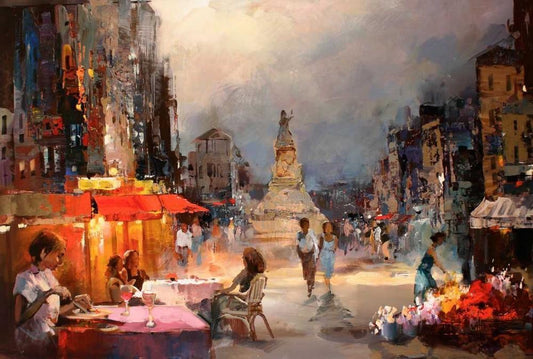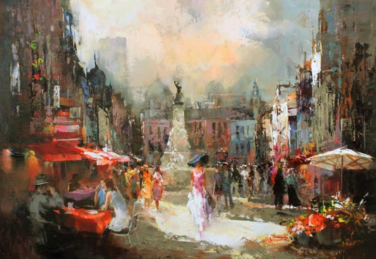 Market Place IV White Modern Wood Framed Art Print with Double Matting by Haenraets, Willem