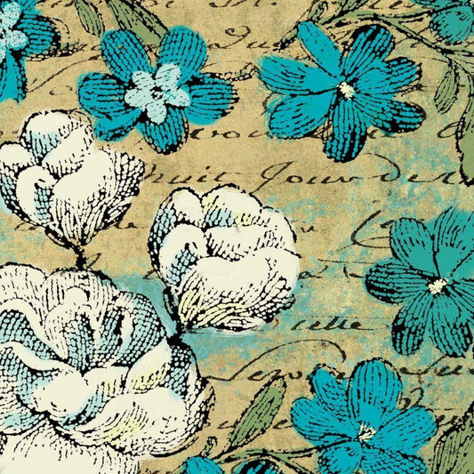 Marche de Fleurs Blue II White Modern Wood Framed Art Print with Double Matting by Audit, Lisa