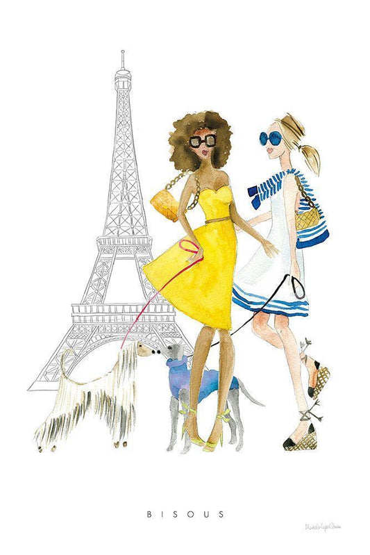 Paris Girlfriends VI White Modern Wood Framed Art Print with Double Matting by Charro, Mercedes Lopez
