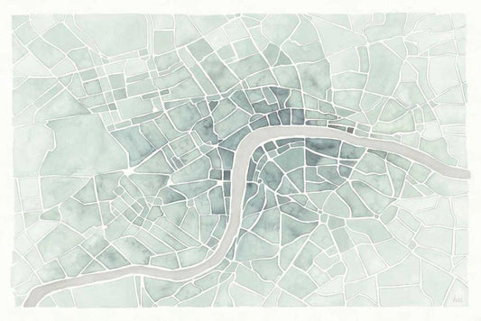 Watercolor Wanderlust London Mint White Modern Wood Framed Art Print with Double Matting by Marshall, Laura