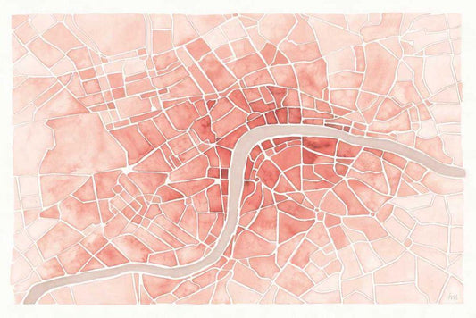Watercolor Wanderlust London Coral White Modern Wood Framed Art Print with Double Matting by Marshall, Laura