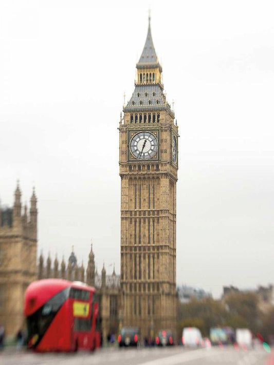Big Ben Bus White Modern Wood Framed Art Print with Double Matting by Bevan, Keri