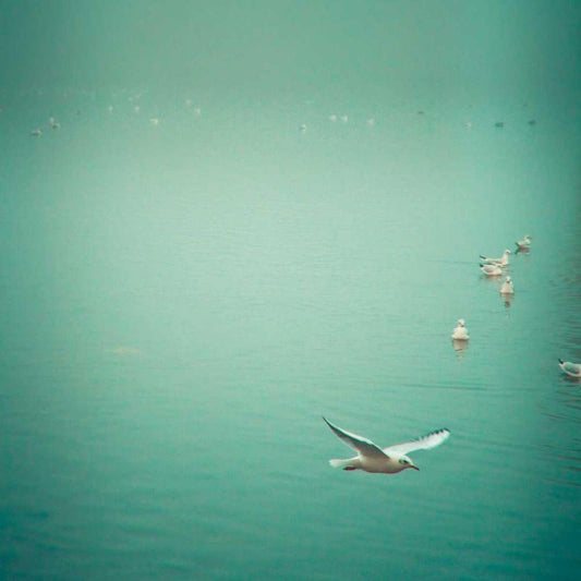 Soul Birds White Modern Wood Framed Art Print with Double Matting by Bevan, Keri