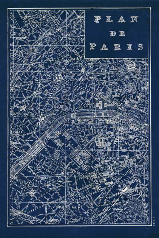 Blueprint Map Paris White Modern Wood Framed Art Print with Double Matting by Schlabach, Sue