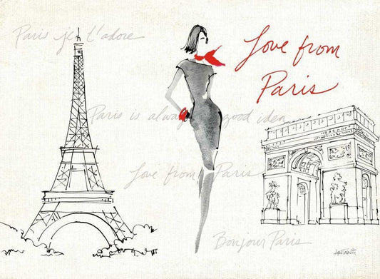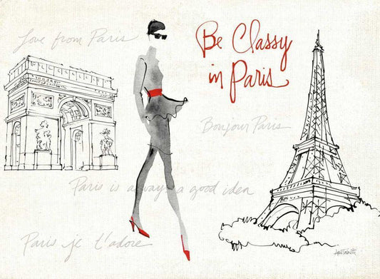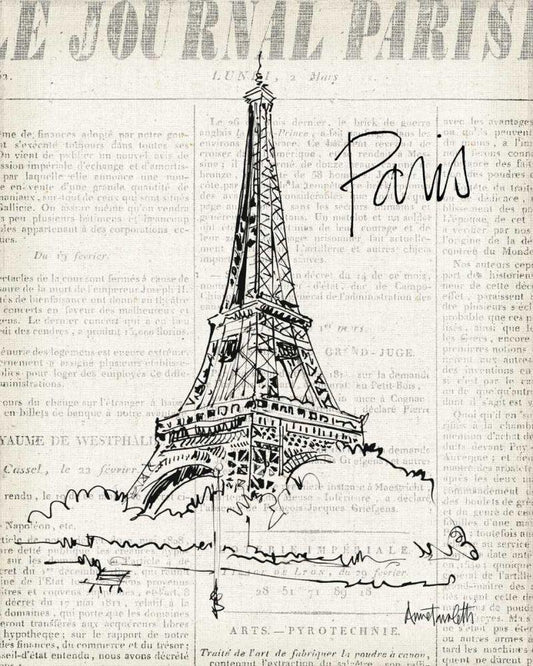 Joy of Paris I White Modern Wood Framed Art Print with Double Matting by Nai, Danhui