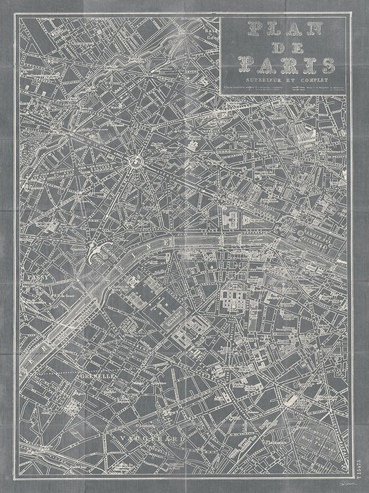 Blueprint Map Paris Grey White Modern Wood Framed Art Print with Double Matting by Schlabach, Sue