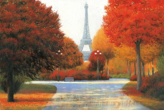 Autumn in Paris White Modern Wood Framed Art Print with Double Matting by Wiens, James