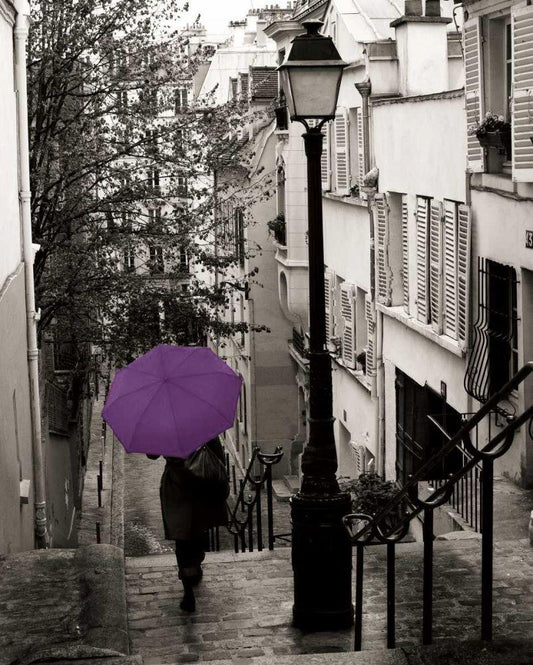 Paris Stroll II Purple Umbrella White Modern Wood Framed Art Print with Double Matting by Schlabach, Sue