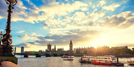 Thames River White Modern Wood Framed Art Print with Double Matting by Navas, Emily