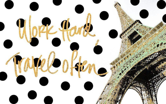 Work Hard Travel Often White Modern Wood Framed Art Print with Double Matting by Navas, Emily
