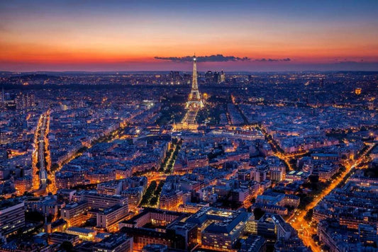 One Starry Night in Paris White Modern Wood Framed Art Print with Double Matting by Flores, Paula Belle