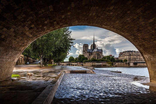 Chien et Notre Dame White Modern Wood Framed Art Print with Double Matting by Herrera, H.J.
